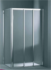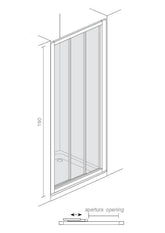 Adjustable profiles compensate for uneven walls; screws of stainless steel; extension 6 cm; magnetic closure; sliding adjustable bearings; powder-coated aluminum frame; transparent 4mm glass; height 185cm; opening 64cm