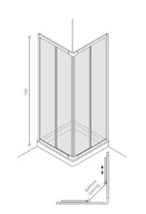 Adjustable profiles compensate for uneven walls; screws of stainless steel; extensibility 6mm; magnetic closure; powder-coated aluminum frame; sliding on autolubrificant skate; glass: clear 4mm; height 185cm; opening 64cm