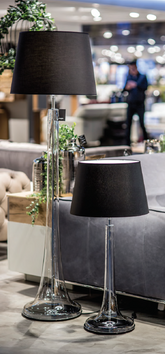 The lamp base is made of colorless, hand-formed glass and then painted with black, transparent gloss paint.