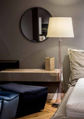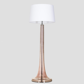 The lamp base is made of colorless, hand-formed glass and then painted with transparent, glossy copper paint.