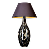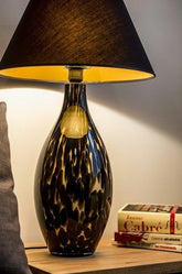 The lamp base is made of hand-formed glass, colored in the glass mass in black and amber.
