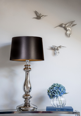 The lamp base is made of colorless, hand-formed glass. Then painted with