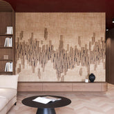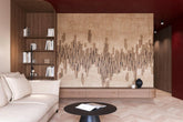 "Abacus" is a pattern inspired by the rhythm of sound, digital structure, and geometry rooted in nature. The abstract composition of vertical, irregular segments resembles a sound wave, a barcode, or a minimalist city composed of vertical forms. Arranged with a sense of proportion, they create an undulating, dynamic line running through the central part of the pattern, while also leaving breathing space at the top and bottom of the composition. The overall effect is reminiscent of both handcrafted natural materials (e.g., wood, linen) and contemporary digital design. The structure and subtle shadows give the pattern a three-dimensional effect – as if the form were convex or delicately carved into the fabric. "Abacus" combines modern austerity with organic calm, creating a space full of rhythm and balance.