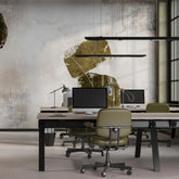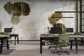 The "Verde" wallpaper is a perfect choice for lovers of minimalist contemporary art and subdued interiors. Its abstract yet balanced character is based on organic forms and earthy colors, which together create a calm, contemplative atmosphere. The composition is built on geometrical patches in shades of rotten green and olive, placed on a matte, textured background reminiscent of the worn surface of canvas or an old wall.