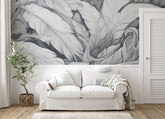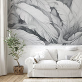 The feather motif has remained a lasting trend, symbolizing freedom, air, and movement, as well as creativity, spirituality, and emotion. In soft gray tones, it gains a timeless and versatile appeal. The contrast between the graphite background and delicate white feathers creates a sense of depth and three-dimensionality.