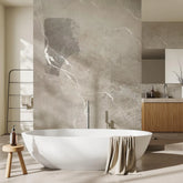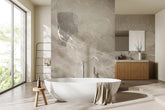 Lapillis offers an abstract vision of stone’s raw strength intertwined with the geometry and enigma of the moon. Its soft beiges and grays echo the allure of precious gems, combining unique visual depth with symbolic richness. The result is a seamless blend of modern elegance and classic design.